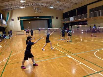 グランドではサッカー部が、体育館ではバドミントン部が近隣校を招いての練習試合を行っています。
