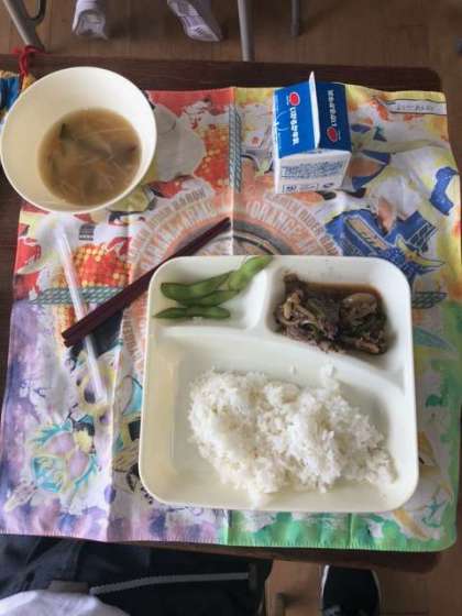 9月7日、今日の給食のメニューは、牛乳、ごはん、プルコギ、トック、えだまめです。