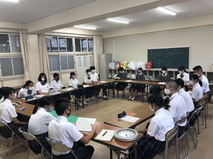 中学校生徒専門委員会・生徒議会が行われ、今月の目標が決定しました。