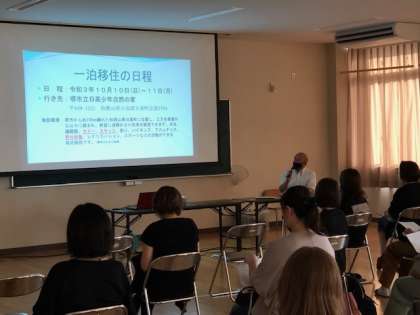 本日、16時より交流スペースにて一泊移住保護者説明会を行いました。下見や卒業生のスライドを用いながら行程や持ち物の説明をさせていただきました。