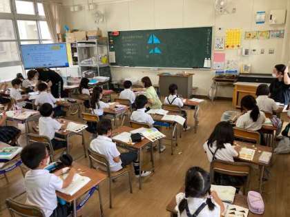 6年生の国語では「1人1台端末が必要かどうか?」をテーマに賛成派と反対派に分かれて話し合いを行いました。
