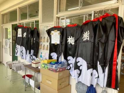 6年生では学年演技で使用する法被の作成も競技の練習と並行してすすんでいます。