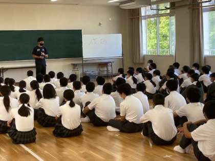 7年生は直前に控えた一泊移住に関するお話、8年生は先生の「カリンバ演奏」から、何事にも挑戦しようというお話がありました。