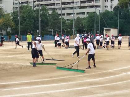 10月3日の運動会の会場準備を行いました。