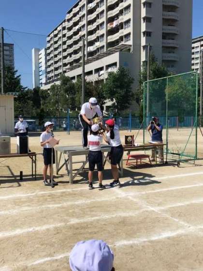 全ての演技・競技を終え、閉会式です。いつもより短い時間の運動会でしたが、どの子どもも精一杯頑張る姿を見せてくれました。