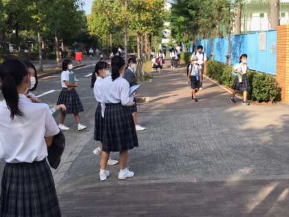 今朝も、中学の風紀委員が門の前に立ってくれています。