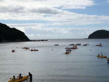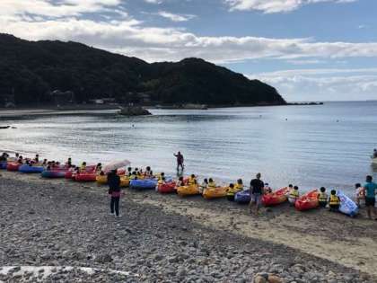 カヌー、カヤック活動です。気温も暑く、海の活動が気持ちいいぐらいです。