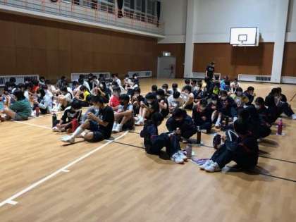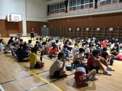 楽しかったキャンプファイアーも終了し補食タイム! 補食はアップルジュースです。