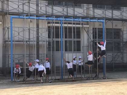 中学校の保健体育の先生も指導に加わり、登り棒や雲梯などもたのしく活動しました。