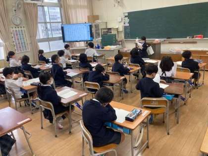 1年生の国語の授業では児童一人一人が朗読のテストをしています。