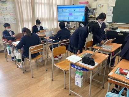 11月9日、少し肌寒い雨が降っていますが、児童・生徒は元気に授業を受けています。