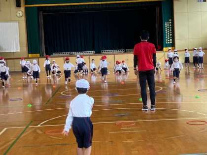 講師の指導のもと、準備体操に始まって、リズムに合わせてジャンプしたり、ダッシュ走をしたり、精一杯体を動かしていました。