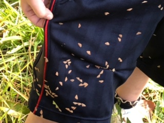 帰ってきた子どもたちや先生の服には・・・たくさんの植物の種がくっついていました。これも秋ならではですね。取るのも大変でした。