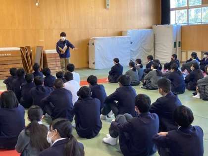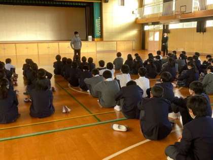 7年生は目標を持つことの大切さを先生自身の目標の話から生徒に伝えました。
