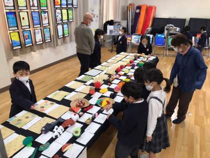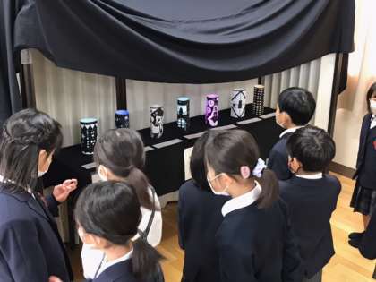 中学生の一つ一つの作品を見た一年生は、みんな「すごいなぁ」と感動していました。