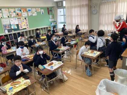 ポトフは肉や野菜などを煮込んだフランスの家庭料理です。煮込んだ肉と野菜をスープと一緒に食べます。給食では牛肉とウインナー、じゃがいも、キャベツ、にんじん、パセリを使っています。