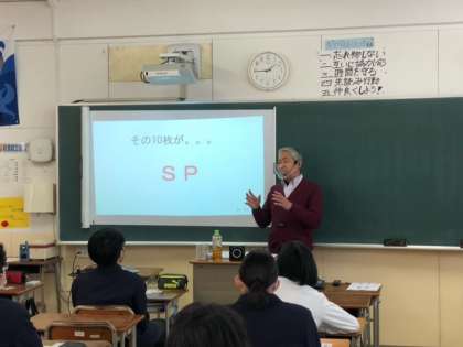 本日、5限目、6限目にキャリア学習の一環として、ヒューマンキャンパスより川島先生にお越しいただき、7年生対象に出前授業をしていただきました。SP(サブパーソナリティー)トランプを活用した授業で、生徒たちも興味を示しながら取り組んでいました。