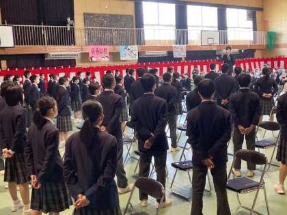 南中38期生オリジナルソング「最高かよ」の様子です。この歌は作詞が令和3年度大阪市立南港南中学校38期生 作曲が橋本先生 編曲が沖先生という世界に1つだけしかないオリジナルソングです。