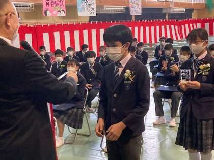 卒業式後、皆勤賞と精勤賞の表彰がありました。