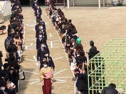 卒業式を終えた生徒は、保護者や教職員・在校生でつくった花道を通って、颯爽と正門から旅立ちました。