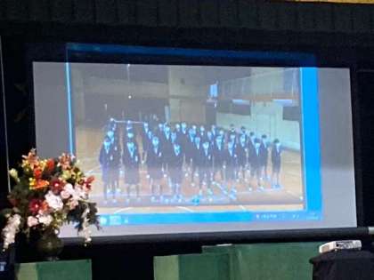 在校生を代表して5年生から、お祝いの言葉と歌がビデオメッセージのかたちでありました。