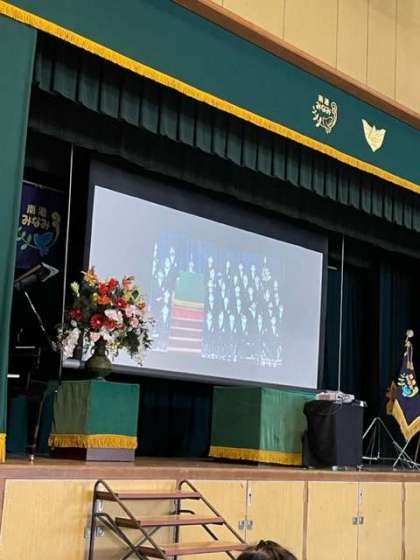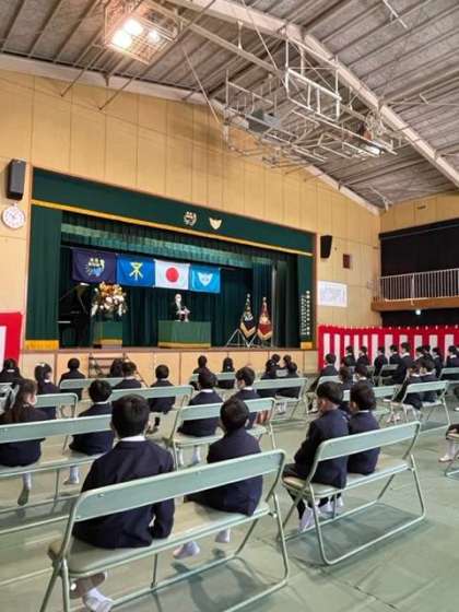 校長先生の話の間は、さすが7年生、素晴らしい態度でした。1年生もとてもかしこく座っていました。