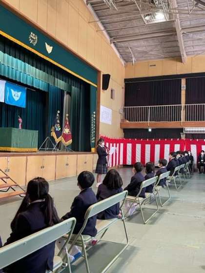 在校生から歓迎のことばがあり、今日から咲洲みなみ小中一貫校の仲間です。よろしくお願いします。