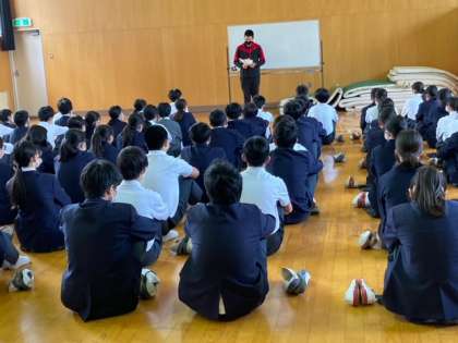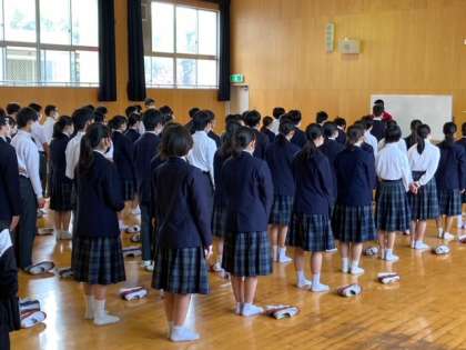 今朝は新年度最初の集会を7年生は交流スペースで、8年生は多目的室で、9年生は格技室でそれぞれ行いました。