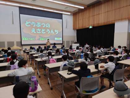 飼育員さんから、動物の食事と健康についてお話を聞きます。