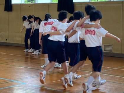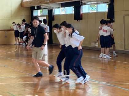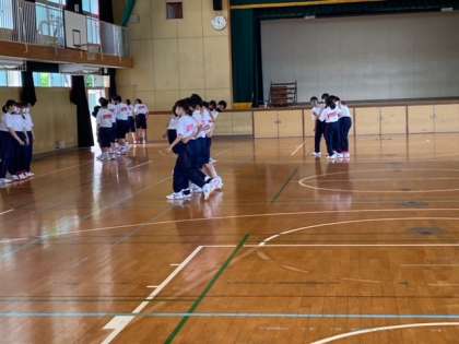 8年生は、体育館で体育大会の練習を行なっています。