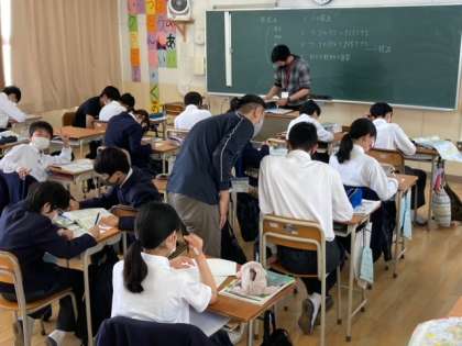 7年生の社会科と、9年生の道徳の授業の様子です。
