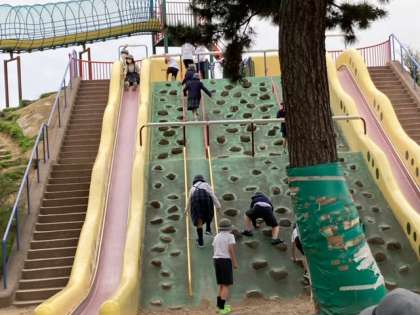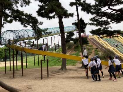 長い滑り台は人気があるようです。