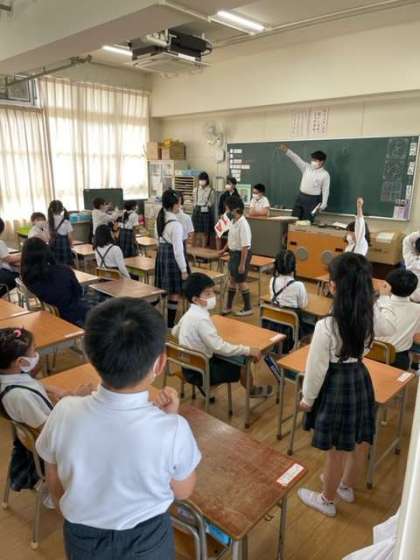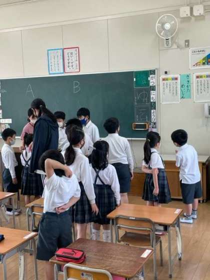 2時間目にたてわり班活動が行われました。今日は班編成後、初めての活動なので、自己紹介をしたり並び方を確認したりしました。