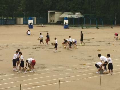 あおはようございます。予想以上に雨が降りましたが体育大会は実施の方向で懸命のグランド整備を行っています。