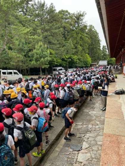 大仏殿前です。多数の学校が来ていてすごい人です。