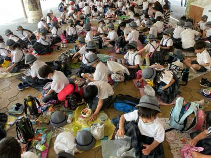 動物を見ながらたくさん歩きました。天気が良く、とても暑かったので疲れたようです。