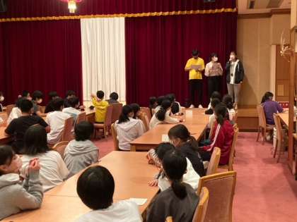 食後の大広間でレクリエーションが始まりました。