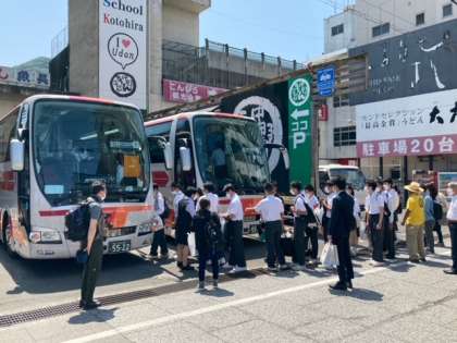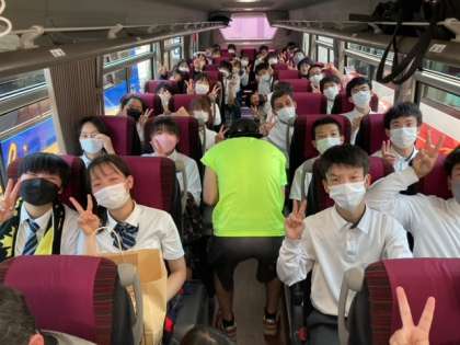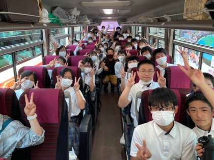 修学旅行 バス出発