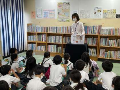 今日は朝から雨模様でしたが、3年生が住之江図書館へ社会見学に行きました。図書館では、読み聞かせをしていただいたり、図書館での本の借り方などを知りました。学校の図書室よりもたくさんの本がありました。