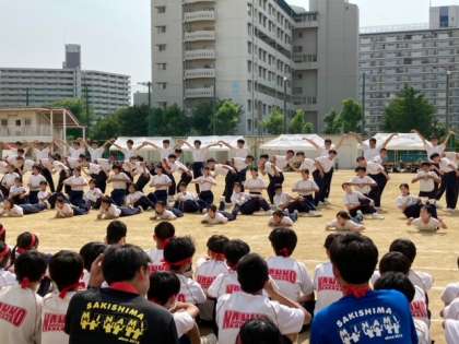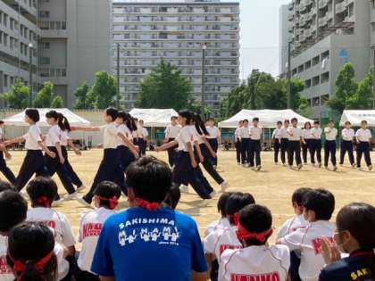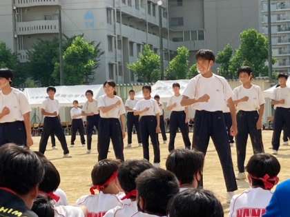 9年生の息ピッタリの集団行動の演技に見ている人は全員引き込まれました。
