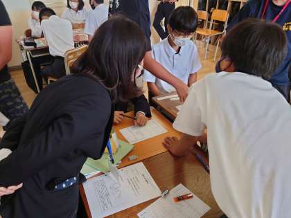 7年の理科で、脊椎動物をその特徴から分類していきます。グループワークも取り入れ、ていねいに授業を進めていました。