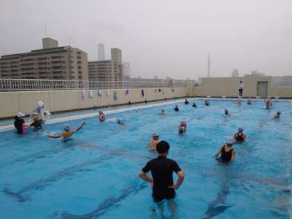 6時間目、4年2組がプールに入りました。