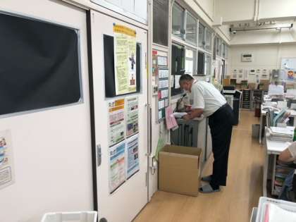 今朝はあいにくの天気のため、放送による全校集会を行いました。