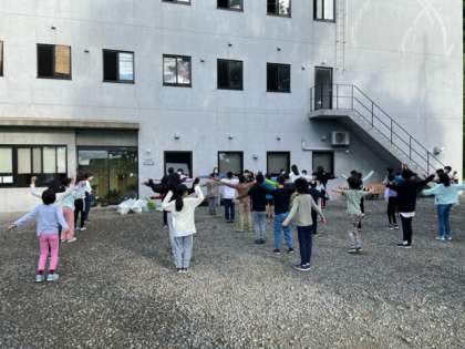 3日目、最終日の朝を迎えました。いい天気です。朝のつどいをして、この後朝食をつくります。