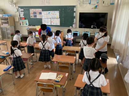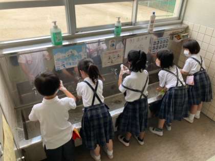 1年生は「きれいな手洗い」について、保健室の平野先生にご指導いただきました。