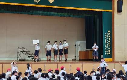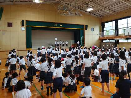 今朝の児童集会は「王様じゃんけんゲーム」です。