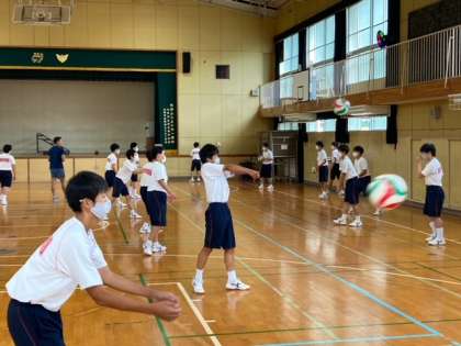 8年生は体育館でバレーボールを行っています。