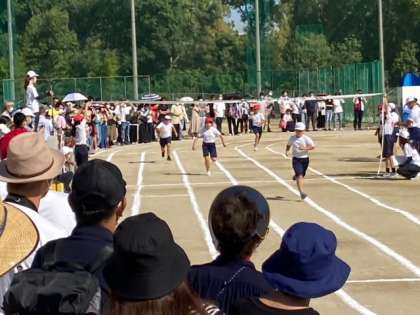4年生の徒競走はトラック一周を走ります。