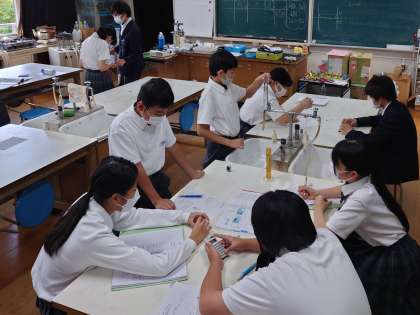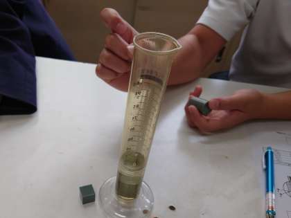 メスシリンダーや量りを使って、ていねいに調べていきます。