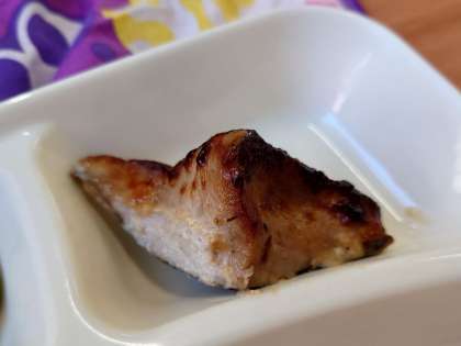 献立は、かつおのマリネ焼き(ノンエッグドレッシング)、ウインナーとじゃがいものスープ、きゅうりのサラダです。
